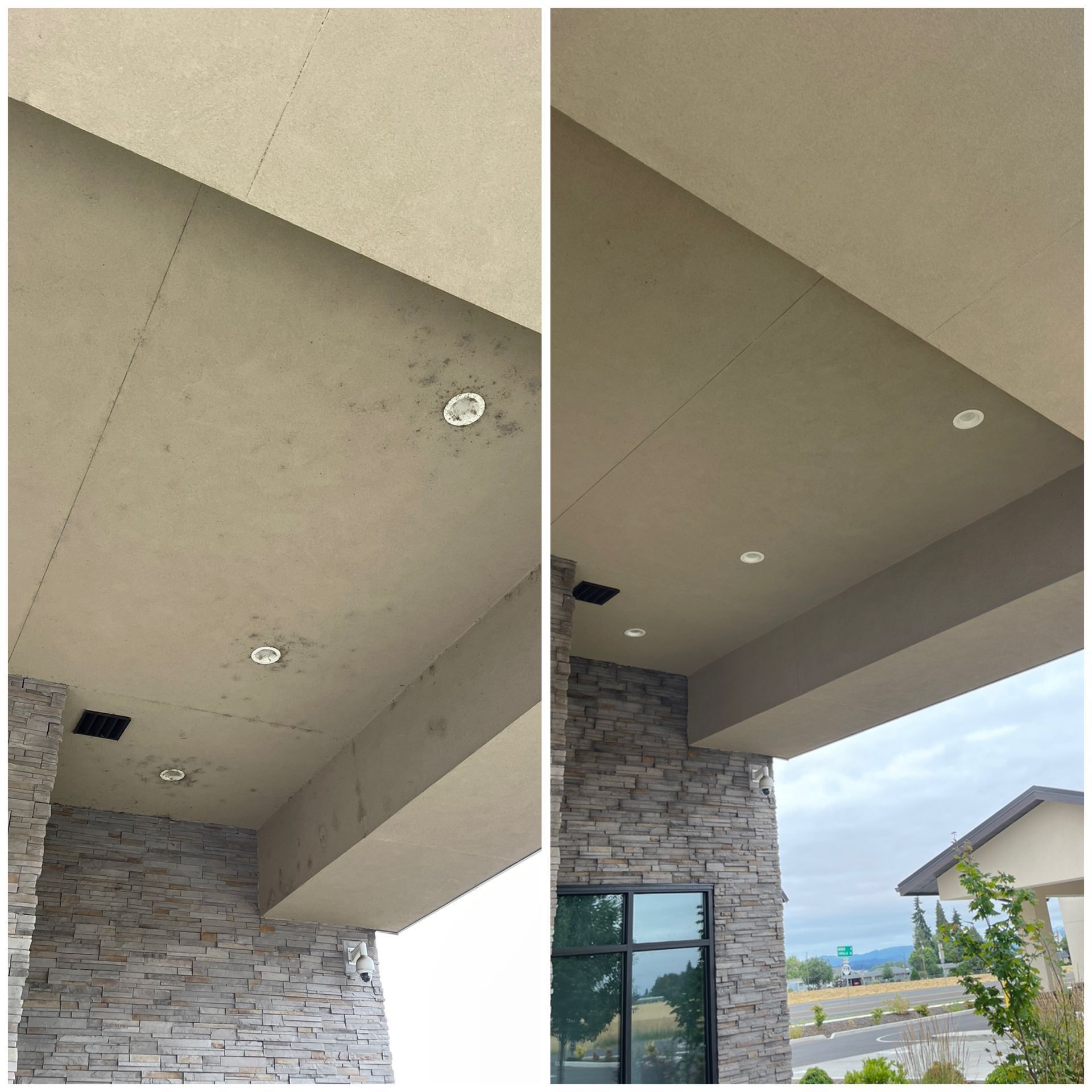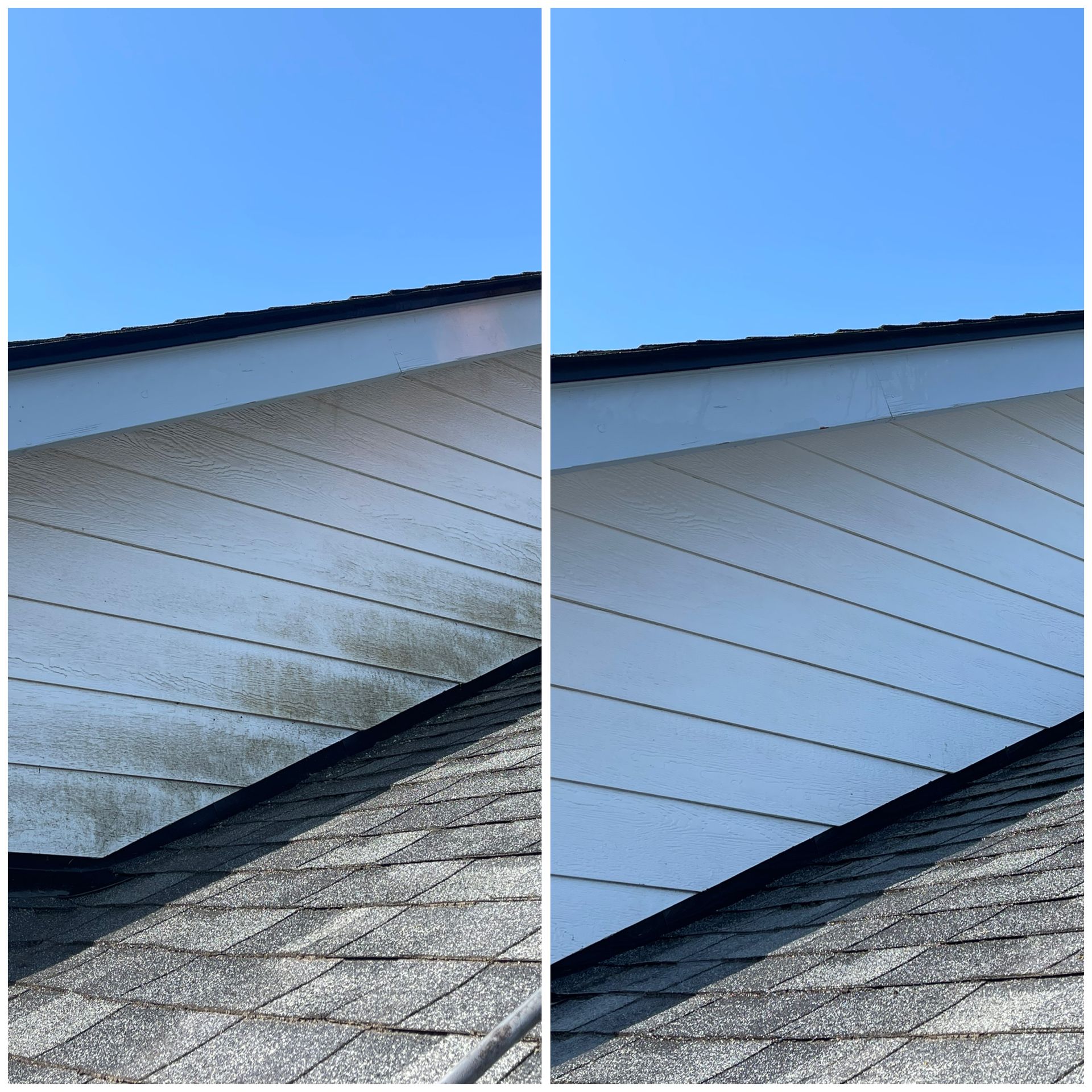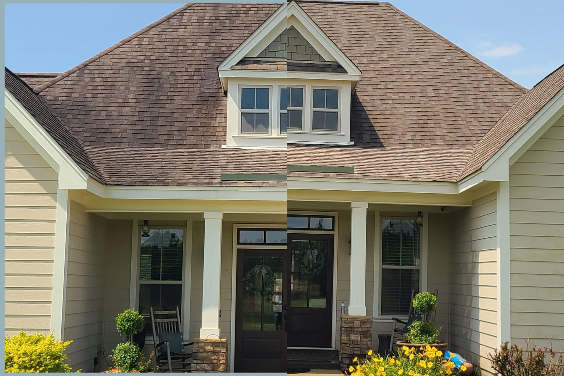 Roofs are covered in natural organics due to weather…. We use our softwash system to kill all of the organics without harming the shingles of your home! A roof wash makes your shingles look new and makes them last longer! Reach out for a free estimate!